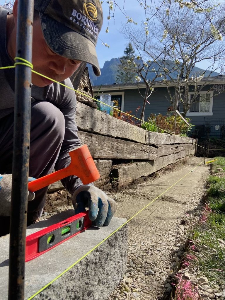 Stepping Stone Pathway Integrated into a Retaining Wall System